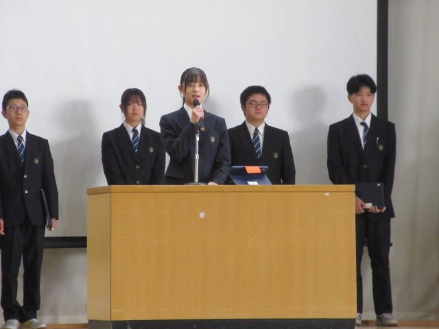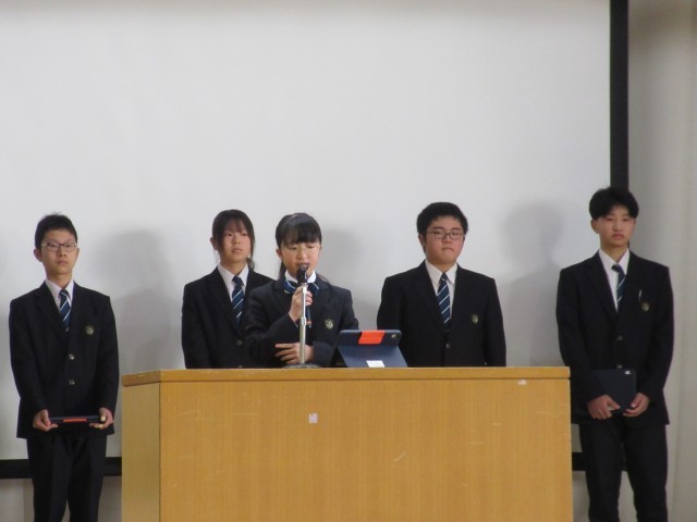 生徒会役員、及び後期専門委員長より、活動の振り返り、今後の活動の内容が伝えられました。