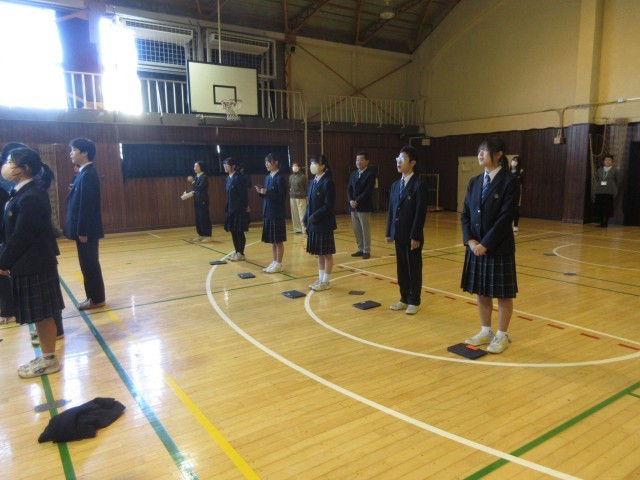 その課題を克服するために、今日は、中央協議会のメンバーが全校生徒を囲むように外側に広がって歌ったり、自身を持って歌えるように生徒手帳見て歌ったりすることなど提案していました。