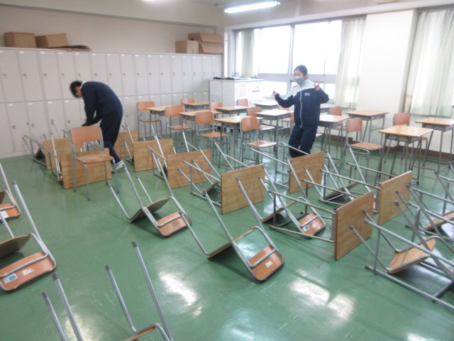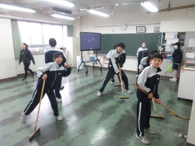最後は、美化委員がワックスをかけて、教室をピカピカに仕上げます。