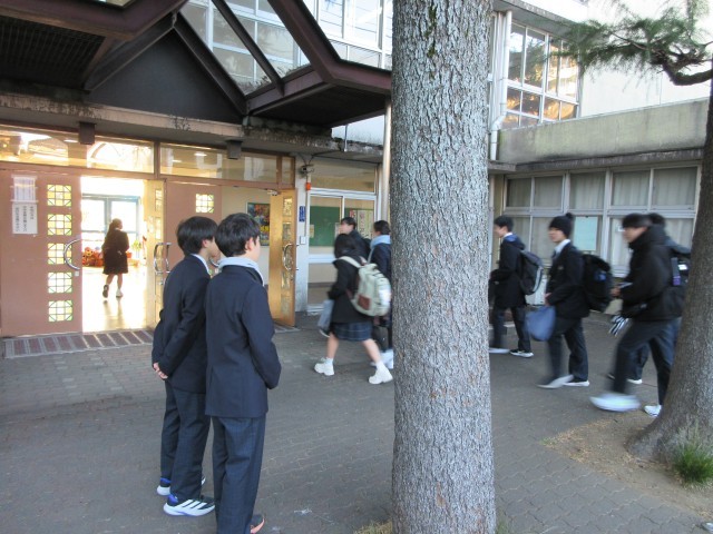 朝は、生活委員会のあいさつ運動からスタートしています。