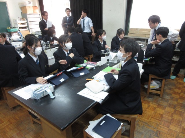 2年A組の生徒は、前回の授業で実験したデータをもとに、集中して考察し、自分の考えを伝え、グループで考えをまとめていました。