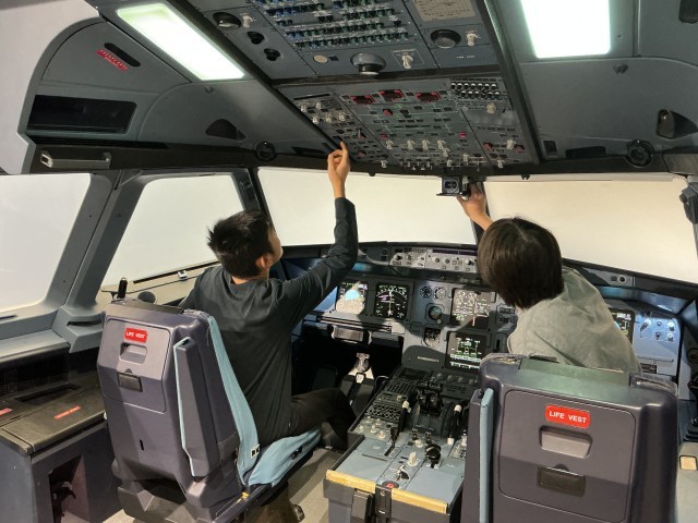 操縦席や客席に実際に座ってみることができるエリアもあり、みんな楽しそうに見学していました。