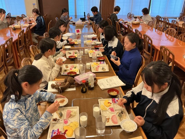 2日目の朝食を食べ、これからスキー実習に向かいます。