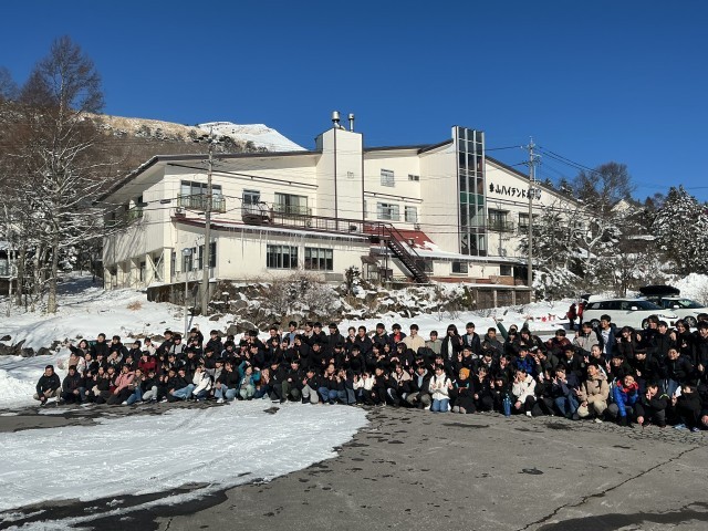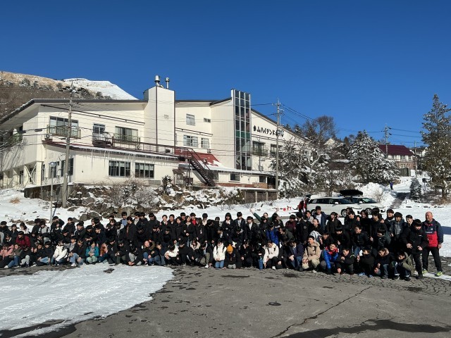 令和8年2月13日(金)八ヶ岳自然宿泊体験教室 全体写真を撮りました 公開日 2026/02/13 更新日 2026/02/13 学校生活・授業・行事 宿舎を出発する前に、全員で記念写真を撮りました。最終日も快晴です。