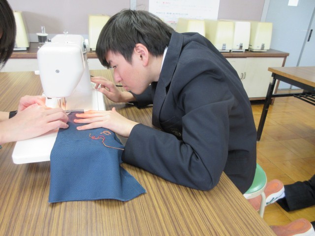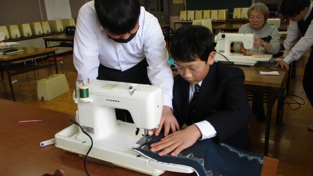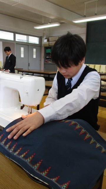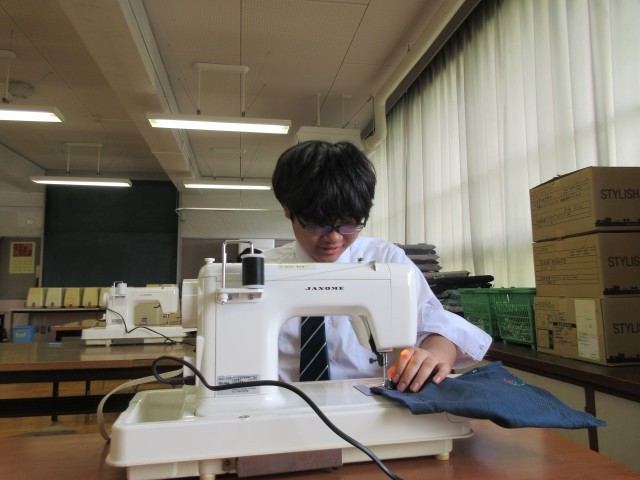 期末テストを終えて、今日の家庭科ではミシンの作業を行いました。