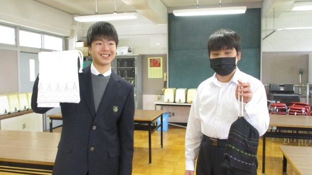 学習発表会で展示をした「スウェーデン刺繍」をした布を使って、各自が「きんちゃく袋」「ランチョンマット」などの形に仕上げました。