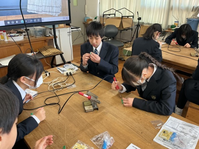 2年生の技術では、エネルギー変換の授業で、ダイナモキューブラジオの制作を行いました。