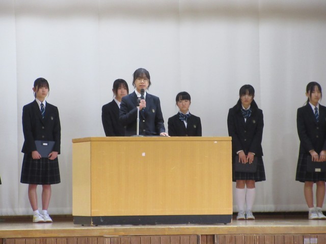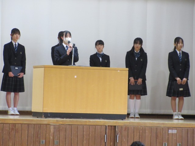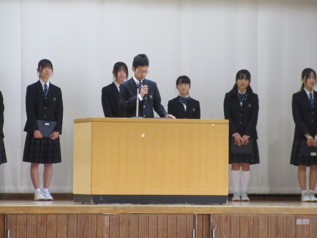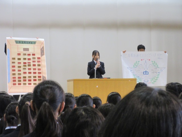 会の最後に、生徒会から、卒業を控えた3年生のために、在校生が協力して作成した、感謝の気持ちを伝えるためのメッセージカードを送りました。
