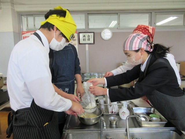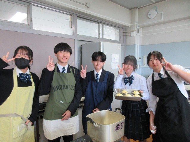 1時間目が終わってすぐにエプロンを身につけて、2時間目のチャイムから調理を始めました。