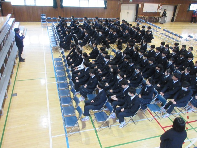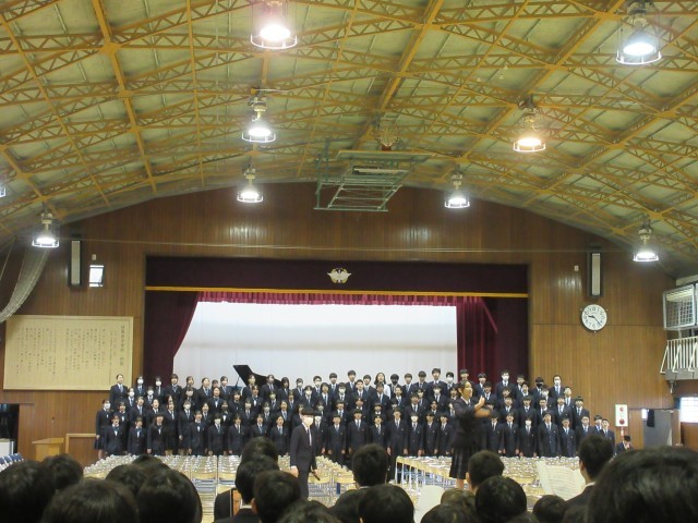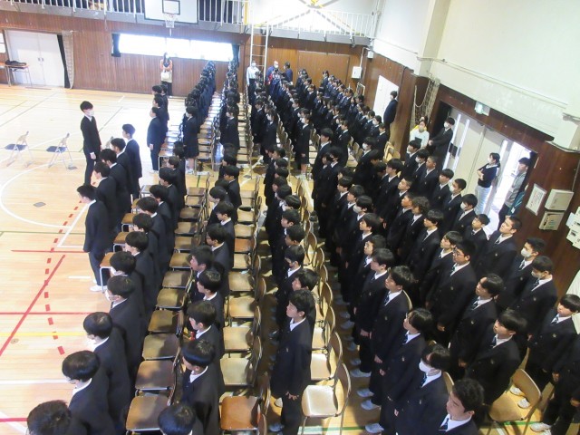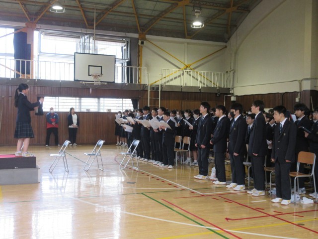 19日(木)卒業式に向けて、全校練習を行いました。