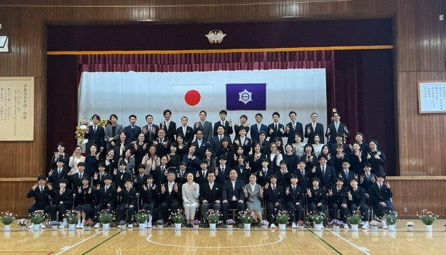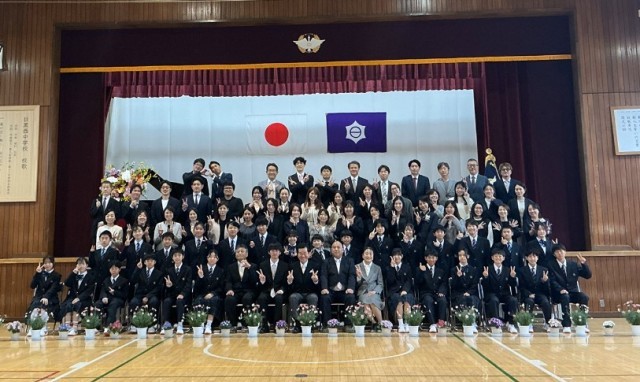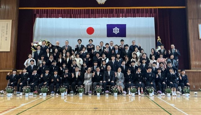 目黒区立目黒西中学校第2回入学式を行い、A組、B組、C組、D組、I組、計123名の生徒が入学しました。