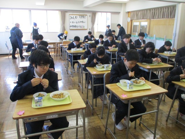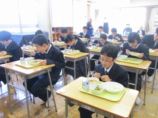 放送委員の流す曲や話に耳を傾けたり、栄養士さんや校長先生が様子を見に来てくれたり、楽しくおしゃべりをしたり、終始和やかな雰囲気でした。