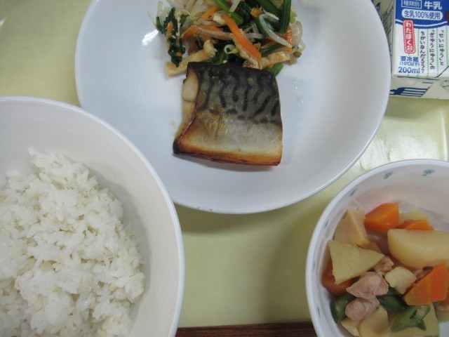 4月14日の給食 公開日 2026/04/14 更新日 2026/04/14 給食 ・ ごはん ・ さばの塩こうじ焼き・ 油揚げと野菜の和えもの ・ 春野菜の炊き合わせ ・ 牛乳 一汁二菜の和食の献立です。炊き合わせには、春が旬のたけのこや 新じゃがいもを使っています。