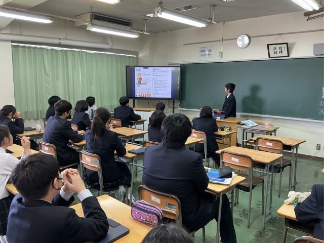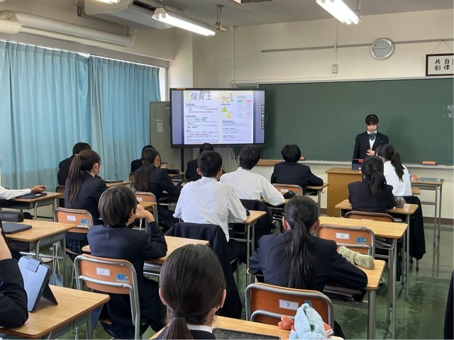 春休みの宿題として、生徒たちが興味のある職業をそれぞれ調べ発表しました。
