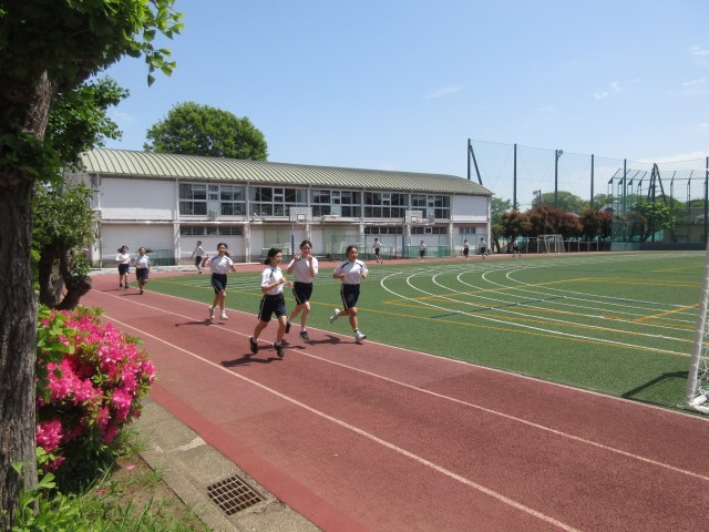 2年生の保健体育では、長距離走の計測を行っていました。