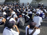 10月2日の目黒区連合体育大会に向け、西中全校生徒で応援の練習をしました。8中、...