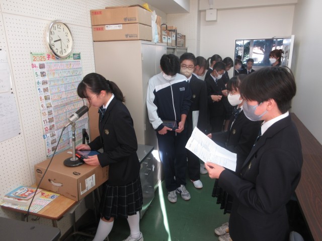 今週は生徒会朝礼からスタートです。 区内でもインフルエンザに罹患している生徒が増えてきており、学級閉鎖や学年閉鎖の対応の連絡が入っています。 今日の生徒会...