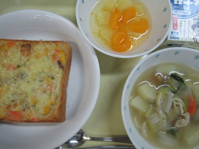 ・ クロックムッシュ風トースト ・ 冬野菜のポトフ・ サイダーポンチ ・ 牛乳 鶏肉(宮崎) にんにく(青森) にんじん(千葉) 玉ねぎ(北海道) パセリ(千葉) じゃがいも(鹿児島) かぶ(千葉) ...